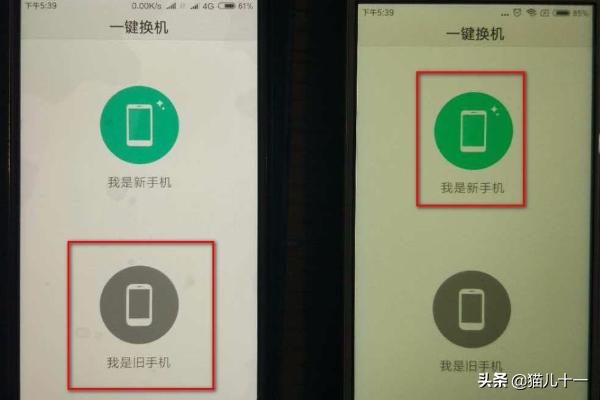 第一步:首先我们打开小米换机app,在新手机上选择【我是新手机】,在旧手机上选择【我是旧手机】。