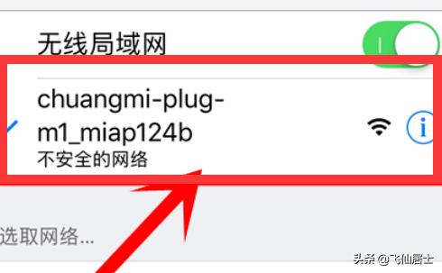 3、接下来,打开手机无线设置,找到无线网络“chuangmi-plug_m1miap124b",并连接上。