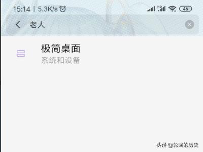 2、在搜索框中搜索“老人”,会弹出搜索结果为【极简桌面】,我们点击进入,